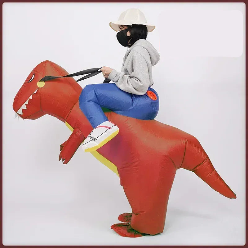 Mode d’emploi : Pour utiliser le costume, il vous suffit de le porter et d'activer le ventilateur intégré pour le gonfler. En quelques secondes, vous serez un dinosaure prêt à impressionner !
