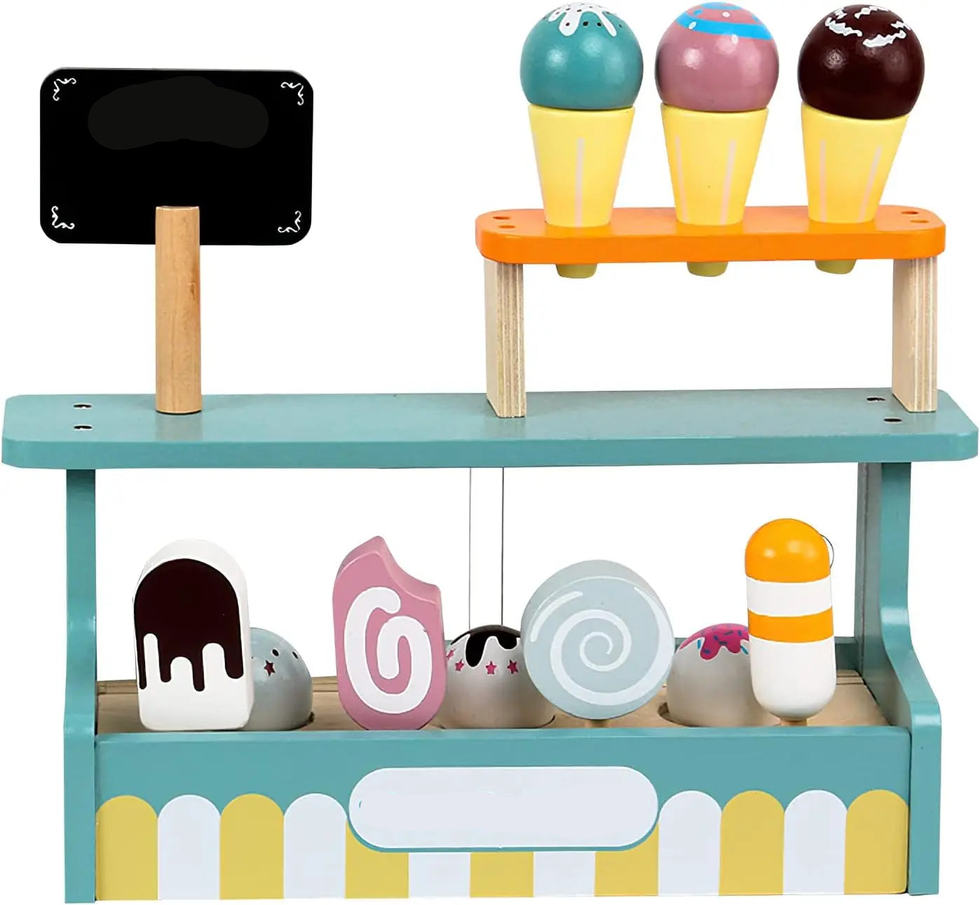 • Esperienza di gioco realistica: Con coni, gelati, lecca-lecca, monete, menu e bancone, i bambini rivivono vere scene di acquisto/vendita.