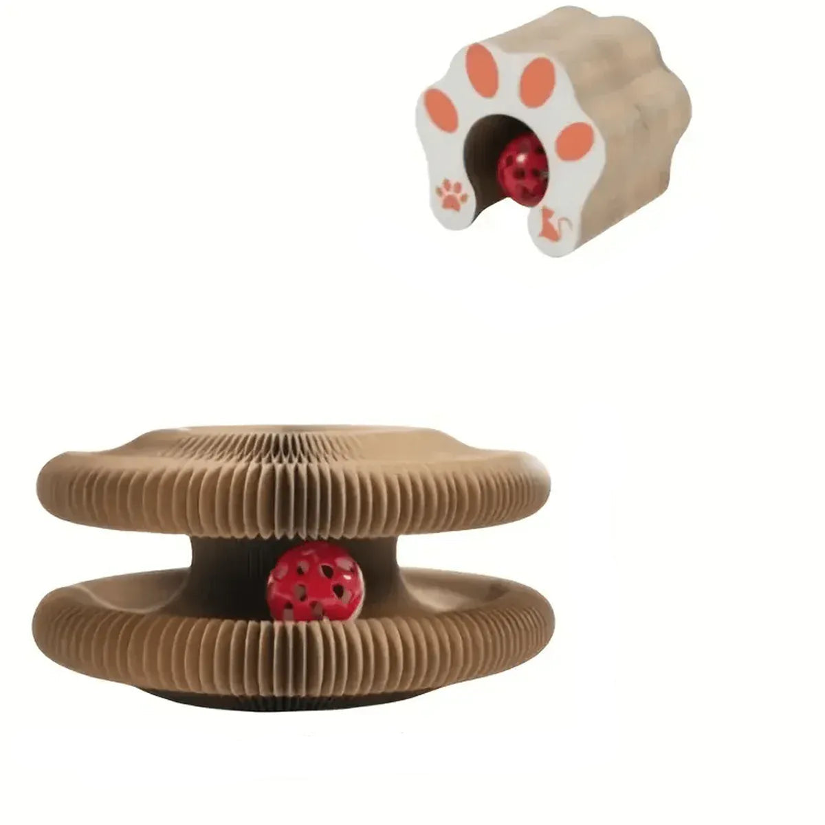 ScratchyFold™ combina graffiatura, gioco e stimolazione mentale. La campanella sospesa e l'erba gatta attirano immediatamente l'attenzione del tuo gatto e lo incoraggiano a rimanere attivo, anche in appartamento.