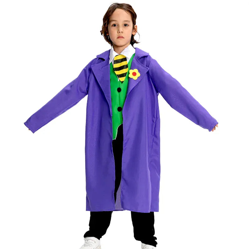 Design unico: La giacca viola con il suo gilet verde e i bottoni dorati cattura perfettamente l'essenza del famoso Joker, per un effetto visivo impressionante.
