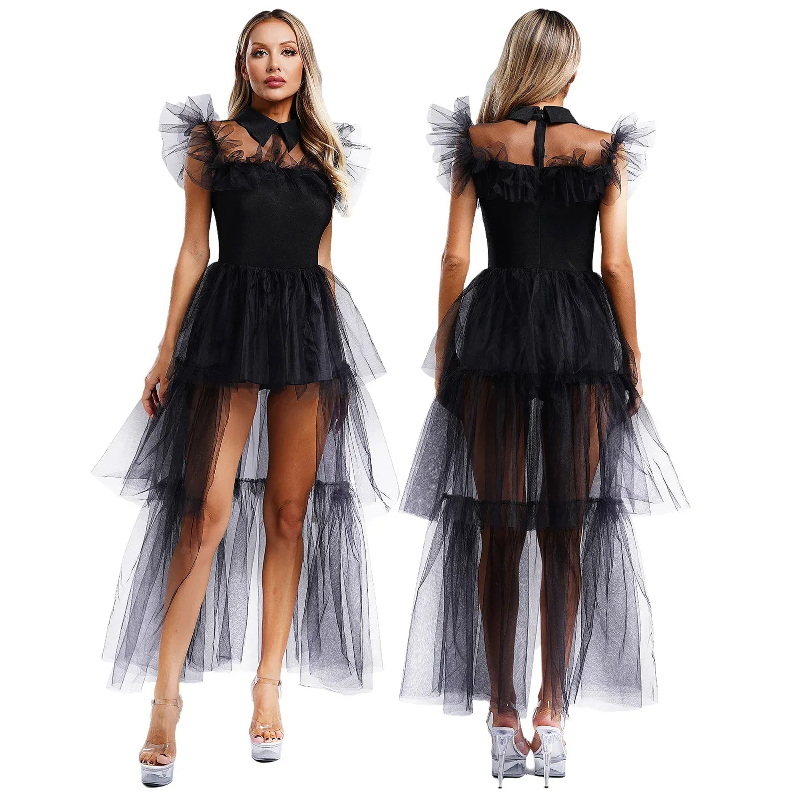 Style versatile : Son design noir classique avec des détails en tulle et un col délicat est parfait pour créer un look Lolita, ou pour toute autre occasion déguisée comme un spectacle de scène ou une soirée à thème.